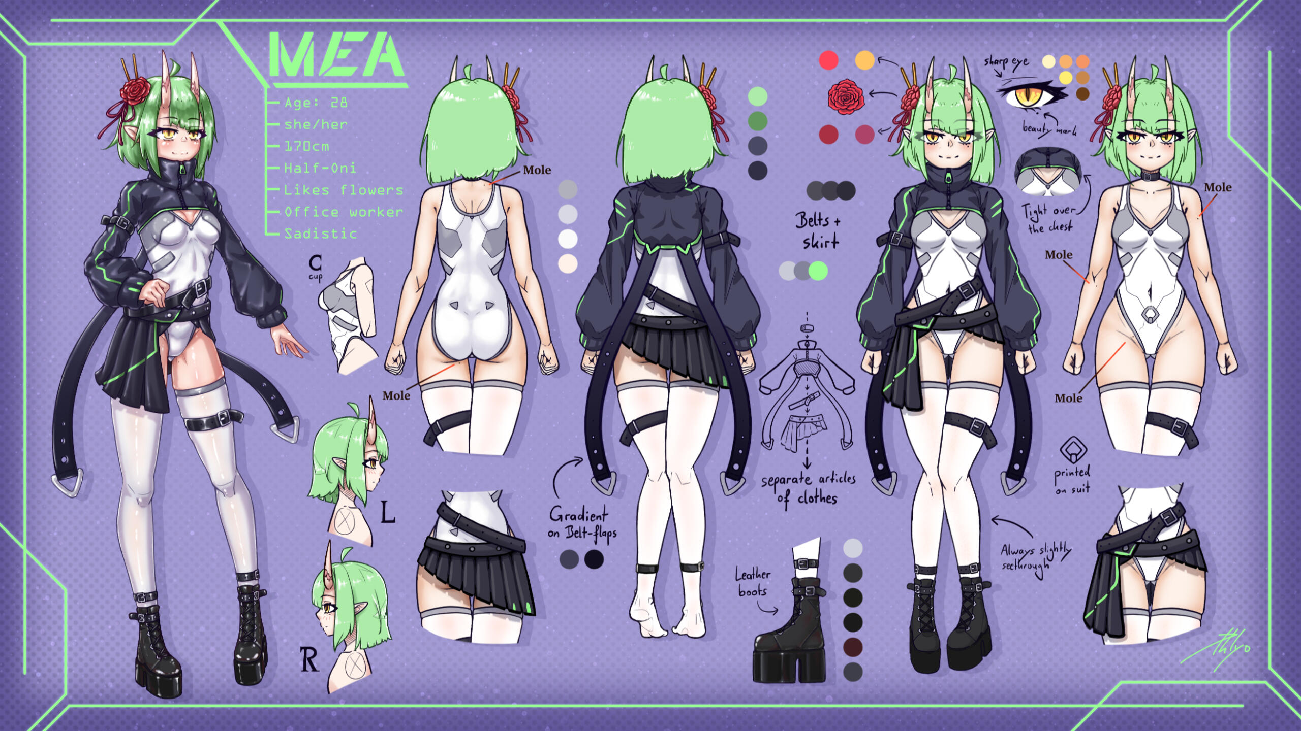 I will create an original character (OC) design for you, going by your input and wishes. Furthermore I will make a full reference sheet for that OC, so you can get more art/assets for your OC in the future.